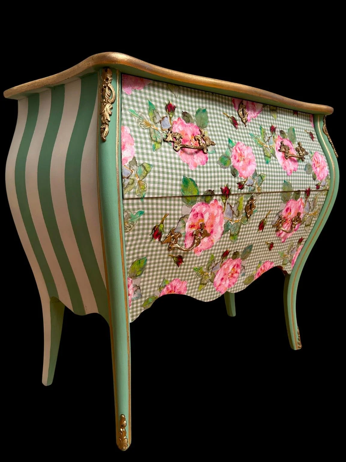 She has built a strong career as an international artist. Her work now includes furniture design, where she revives old pieces with fresh updates. Mariya focuses on top quality, using methods like decoupage, gold accents, and hand-painting. Each item is made with care and is one of a kind. Reach out to talk about a custom piece.