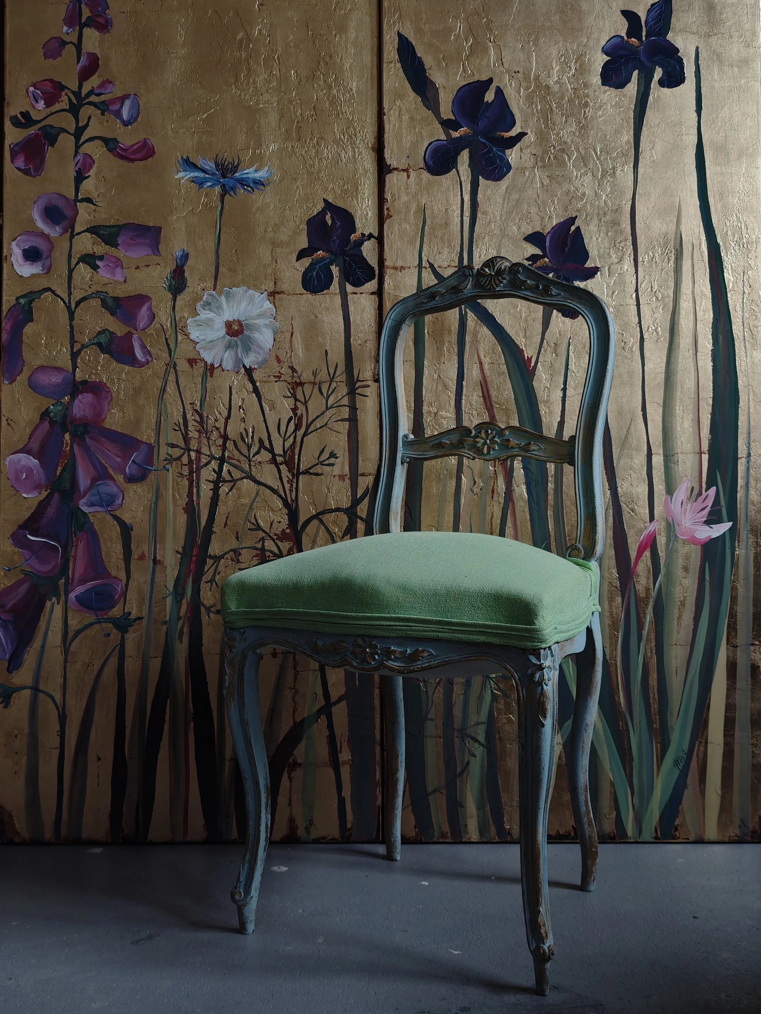 Under the name MAG Handmade, I create custom painted furniture as true art objects, take selective commissions for special pieces, and run an inspiring school for furniture and wall decorators in Latvia (both in-person and online).